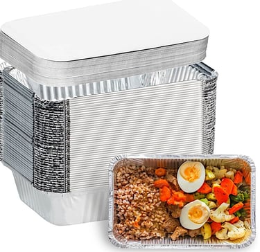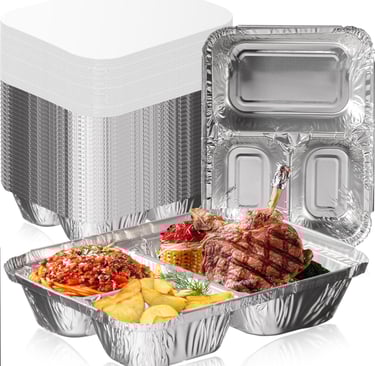 Three course meals can be stored in re-heatable aluminum containers for convenience, and to save on containers and cost.